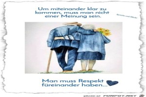 | Man muss Respekt fuer einander haben Bild (65.95 KB) 3Herziges → Sprüche | Herziges → Sprüche | 22.02.21-08:36 | ||