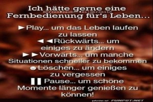 | Hätte gerne eine Fernbedinung fürs Leben Bild (92.65 KB) 8Herziges → Sprüche | Herziges → Sprüche | 20.07.24-12:34 | ||