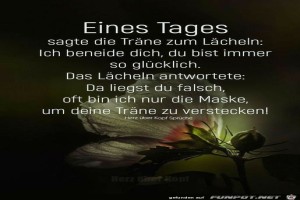 | Eines Tages sagte die Träne zum Lächeln Bild (42.15 KB) 3Herziges → Sprüche | Herziges → Sprüche | 26.11.23-14:42 | ||