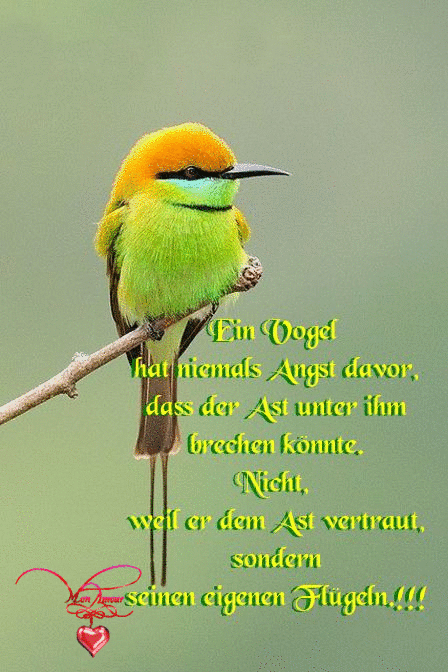 | EinVogel hat niemals Angst Bild (358.23 KB) 2Herziges → Sprüche | Herziges → Sprüche | 19.07.23-14:55 | ||
