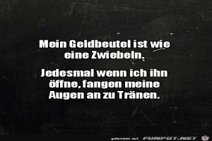 | Geldbeutel ist wie eine Zwiebel Bild (58.8 KB) 4Lustiges → klasse Sprüche und Witze | Lustiges → klasse Sprüche und Witze | 27.11.20-08:43 | ||