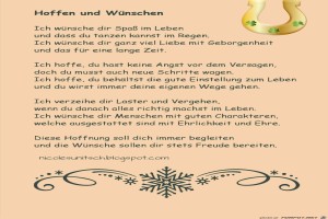 | Hoffen und wünschen Bild (270.8 KB) 9Herziges → ich wünsche dir... Gedicht - Spruch für Neujahr, Jahreswechsel - Guten Rutsch - Prosit Neujahr - Gesundheit - Nachricht von Nicole Sunitsch | Herziges → ich wünsche dir... | 29.12.21-22:39 | ||