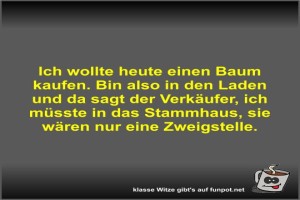 1 | ![]() ![]() ![]() | Ich wollte heute einen Baum kaufen Bild (33.63 KB) 1Lustiges → klasse Sprüche und Witze | Lustiges → klasse Sprüche und Witze | heute-19:21 | Fossy | |
