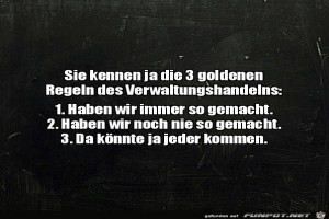 | Goldene Regeln in der Verwaltung Bild (88.38 KB) 13Lustiges → klasse Sprüche und Witze | Lustiges → klasse Sprüche und Witze | 31.01.21-08:30 | ||