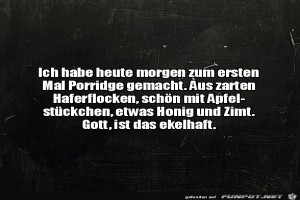 | Porridge gemacht Bild (97.7 KB) 4Lustiges → klasse Sprüche und Witze | Lustiges → klasse Sprüche und Witze | 27.10.22-08:07 | ||