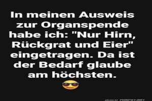 | Humorvoller Organspendeausweis Eintrag Bild (86.09 KB) 2Lustiges → klasse Sprüche und Witze | Lustiges → klasse Sprüche und Witze | 22.06.-10:46 | ||