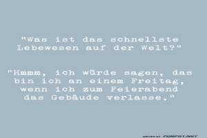 | Das schnellste Lebewesen am Freitag Bild (37.81 KB) 6Lustiges → klasse Sprüche und Witze | Lustiges → klasse Sprüche und Witze | 22.06.-10:14 | ||