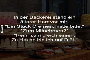 | Witz über Cremeschnitte und Diät Bild (226.77 KB)  2Lustiges → klasse Sprüche und Witze  | Lustiges → klasse Sprüche und Witze | 18.04.-09:05 | ||