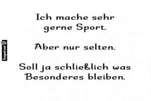 | Sport machen: Besonders und selten Bild (88.93 KB) Lustiges → klasse Sprüche und Witze | Lustiges → klasse Sprüche und Witze | 29.03.-19:02 | |||