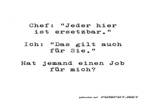| Jeder ist ersetzbar Bild (28.95 KB) 2Lustiges → klasse Sprüche und Witze | Lustiges → klasse Sprüche und Witze | 15.08.24-08:48 | ||