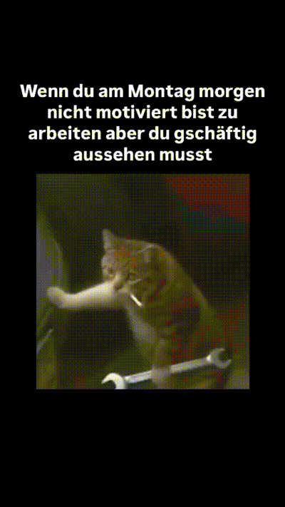 |  1 |     GIF     | Wenn du motiviert aussehen musst Bild (897.29 KB)  1 Lustiges → witzige Bilder → animierte Bilder und lustige Katzen | Lustiges → witzige Bilder → animierte Bilder und lustige Katzen | 08.10.24-16:22 | ||