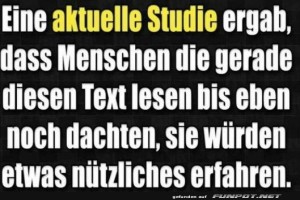 | Aktuelle Studie Bild (84.27 KB) 1Lustiges → klasse Sprüche und Witze | Lustiges → klasse Sprüche und Witze | 18.09.24-09:01 | ||