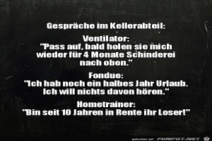 | Keller-Gespräch Bild (107.82 KB) 11Lustiges → klasse Sprüche und Witze | Lustiges → klasse Sprüche und Witze | 17.06.21-11:24 | ||