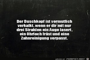 | Verkalkter Duschkopf Bild (78.33 KB) 5Lustiges → klasse Sprüche und Witze | Lustiges → klasse Sprüche und Witze | 11.06.21-07:47 | ||