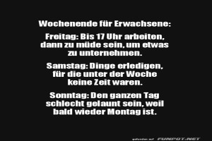 | Wochenende für Erwachsene Bild (68.65 KB) 6Lustiges → klasse Sprüche und Witze | Lustiges → klasse Sprüche und Witze | 25.08.24-09:21 | ||