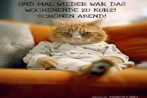 | Wochenende war zu kurz Bild (70.63 KB) 21Lustiges → witzige Bilder und lustige Katzen | Lustiges → witzige Bilder und lustige Katzen | 23.09.24-15:50 | ||