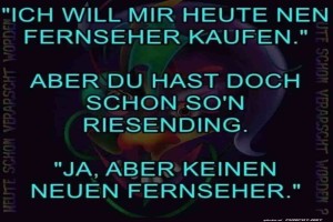 | Unterhaltsamer Dialog über Fernsehkauf Bild (69.85 KB) am 16. Februar 2025 um 06:19 Uhr Lustiges → klasse Sprüche und Witze | Lustiges → klasse Sprüche und Witze | 16.02.-06:19 | |||
