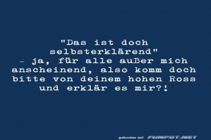 | Ironische Aussage über Erklärungen Bild (46.51 KB) am 11. Februar 2025 um 16:07 Uhr Lustiges → klasse Sprüche und Witze | Lustiges → klasse Sprüche und Witze | 11.02.-16:07 | |||