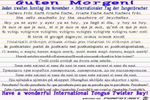 | Zungenbrecher-Tag Bild (124.2 KB) am 19. November 2020 um 01:31 Uhr Herziges → guten-Morgen-Bilder Guten Morgen | Herziges → guten-Morgen-Bilder | 19.11.20-01:31 | ||