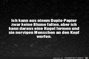| Kugel aus Duplo-Papier Bild (93.31 KB) 4Lustiges → klasse Sprüche und Witze | Lustiges → klasse Sprüche und Witze | 13.04.22-07:50 | ||