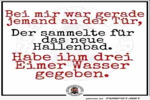 | 3 Eimer Wasser Bild (78.52 KB) 4Lustiges → klasse Sprüche und Witze | Lustiges → klasse Sprüche und Witze | 06.10.24-09:47 | ||