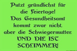 | feiertage putzen Bild (536.94 KB) 4Lustiges → klasse Sprüche und Witze | Lustiges → klasse Sprüche und Witze | 21.12.21-06:41 | ||