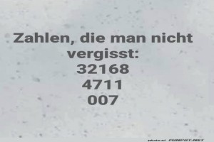 | Unvergessliche Zahlen für Jedermann Bild (46.33 KB) 11Lustiges → klasse Sprüche und Witze | Lustiges → klasse Sprüche und Witze | 24.01.-12:01 | ||