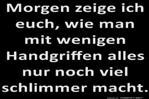 | Morgen zeige ich es euch Bild (78.71 KB)  12Lustiges → klasse Sprüche und Witze  | Lustiges → klasse Sprüche und Witze | 19.04.24-09:31 | ||