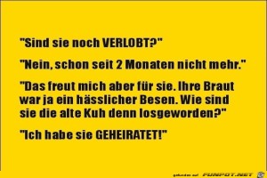 | Verlobt Bild (40.25 KB) 10Lustiges → klasse Sprüche und Witze | Lustiges → klasse Sprüche und Witze | 22.07.22-16:16 | ||