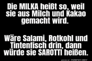 | Milka Bild (75.95 KB) 4Lustiges → klasse Sprüche und Witze | Lustiges → klasse Sprüche und Witze | 04.08.24-09:19 | ||