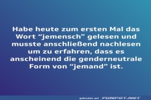 | Jemensch Bild (56.88 KB) 3Lustiges → klasse Sprüche und Witze | Lustiges → klasse Sprüche und Witze | 01.08.24-08:35 | ||