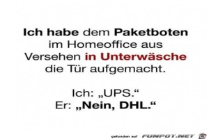 | Dem Paketboten geöffnet Bild (35.97 KB) 6Lustiges → klasse Sprüche und Witze | Lustiges → klasse Sprüche und Witze | 20.07.23-08:29 | ||