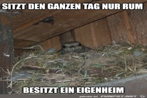 | Sitzt nur rum und hat trotzdem ein Eigenheim Bild (114.61 KB) 1Lustiges → witzige Bilder und Mit Tieren | Lustiges → witzige Bilder und Mit Tieren | 20.06.23-08:46 | ||
