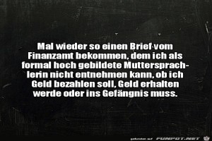 | Brief vom Finanzamt Bild (102.5 KB) 13Lustiges → klasse Sprüche und Witze | Lustiges → klasse Sprüche und Witze | 19.01.23-15:30 | ||