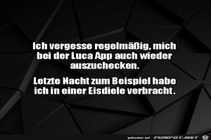 | Auschecken bei der Luca-App Bild (51.07 KB) 14Lustiges → klasse Sprüche und Witze | Lustiges → klasse Sprüche und Witze | 17.07.21-17:44 | ||