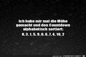 | Alphabetischer Countdown Bild (84.91 KB) 22Lustiges → klasse Sprüche und Witze | Lustiges → klasse Sprüche und Witze | 31.05.21-08:14 | ||