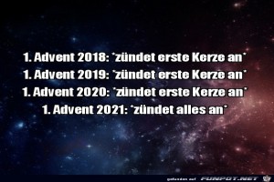 | Der 1.Advent Bild (79.43 KB) 3Lustiges → klasse Sprüche und Witze | Lustiges → klasse Sprüche und Witze | 30.11.21-16:58 | ||