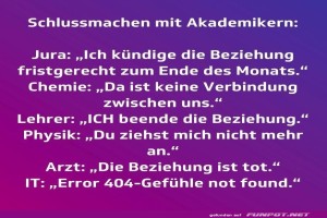 | Schlussmachen mit Akademikern Bild (124.73 KB) 4Lustiges → klasse Sprüche und Witze | Lustiges → klasse Sprüche und Witze | 31.12.24-06:03 | ||
