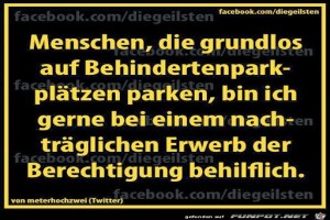 | Parken auf einem Behindertenstellplatz Bild (124.56 KB) 3Lustiges → klasse Sprüche und Witze | Lustiges → klasse Sprüche und Witze | 23.12.23-08:20 | ||