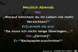 | Neulich abends Bild (60.22 KB) Lustiges → klasse Sprüche und Witze | Lustiges → klasse Sprüche und Witze | 21.10.23-09:19 | |||