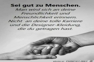 | Sei gut zu Menschen Bild (74.42 KB) 3Herziges → Sprüche | Herziges → Sprüche | 19.08.23-15:08 | ||