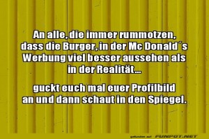 | Burger-Werbung vs. Realität: Ein Spiegelvergleich Bild (115.74 KB) 1Lustiges → klasse Sprüche und Witze | Lustiges → klasse Sprüche und Witze | 14.02.-11:54 | ||