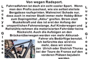 | Von wegen Radsport Bild (141.5 KB) am 23. November 2025 um 23:01 Uhr Lustiges → klasse Sprüche und Witze | Lustiges → klasse Sprüche und Witze | 23.11.-23:01 | |||
