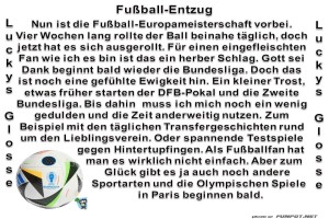 | Fussball-Entzug Bild (152.51 KB) 1Lustiges → klasse Sprüche und Witze | Lustiges → klasse Sprüche und Witze | 17.07.24-09:08 | ||