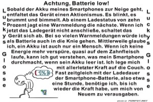 | Achtung Batterie ist low Bild (159.54 KB) 2Lustiges → klasse Sprüche und Witze | Lustiges → klasse Sprüche und Witze | 27.02.-18:04 | ||