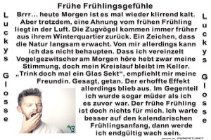 | Frühe Frühlingsgefühle Bild (140.21 KB) 1Lustiges → klasse Sprüche und Witze | Lustiges → klasse Sprüche und Witze | 11.02.-21:53 | ||