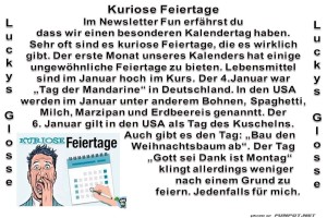 | Kuriose Feiertage Powerpoint (4.49 MB) 49Lustiges Ich erwähne ja in meinem Eingangstext auch sehr gerne kuriose Feiertage. In dieser tollen Datei findest du auch noch ein paar lustige Exemplare dieser kuriosen Feiertage. | Lustiges | 09.01.-21:59 | ||