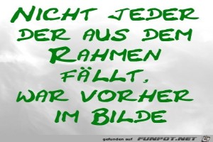 | Nicht jeder der aus dem Rahmen fällt, war vorher im Bilde Bild (58.18 KB) 10Lustiges → klasse Sprüche und Witze | Lustiges → klasse Sprüche und Witze | 07.03.23-10:04 | ||