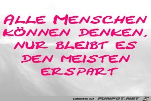 | Alle Menschen können denken, nur bleibt es den meisten erspa Bild (54.82 KB) 7Lustiges → klasse Sprüche und Witze | Lustiges → klasse Sprüche und Witze | 08.03.23-17:55 | ||