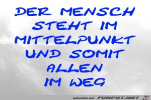 | Der Mensch steht im Mittelpunkt... Bild (131.62 KB) 13Lustiges → klasse Sprüche und Witze | Lustiges → klasse Sprüche und Witze | 14.03.23-10:05 | ||